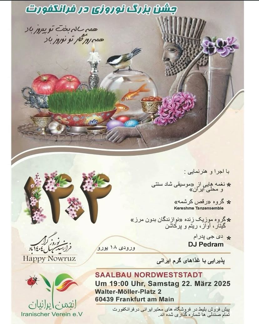 ه این وسیله به اطلاع می رسانیم که انجمن ایرانیان در فرانکفورت با توجه به استقبال والدین و کودکان عزیز، ثبت نام دوره دوم کلاسهای فارسی برای ترم بهار و تابستان را آغاز می کند.